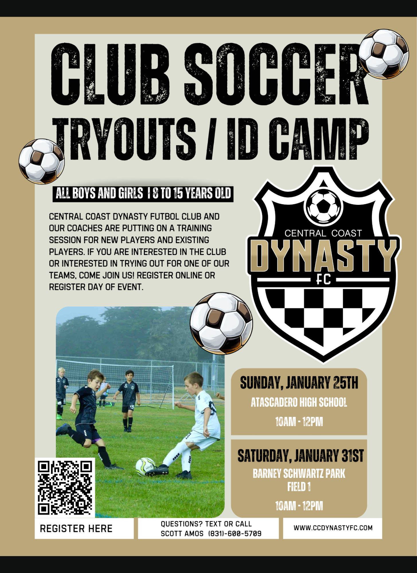 CCDFC TRYOUTS WILL BE CONDUCTED THROUGHOUT DEC. JAN. & FEB